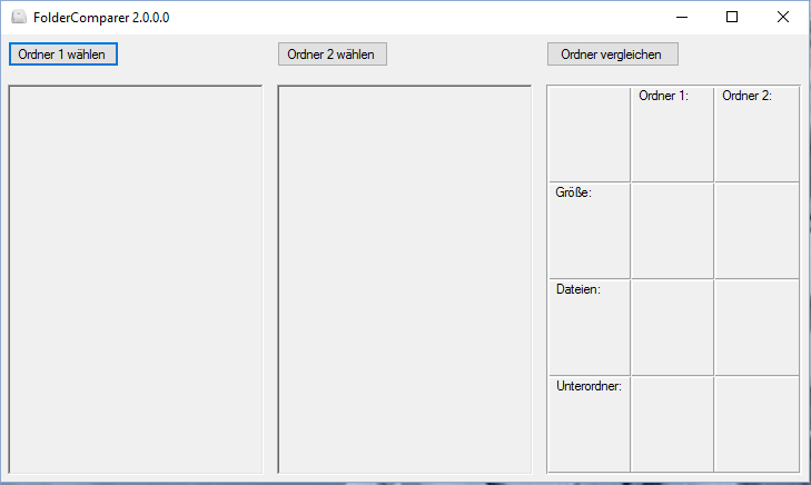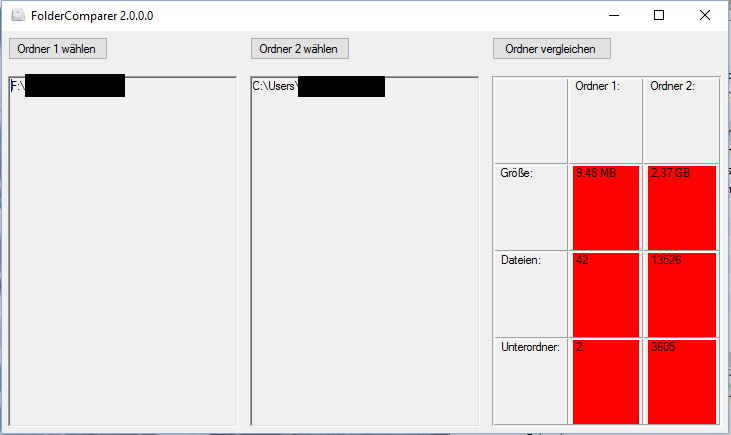 Ein Programm, um 2 Ordner auf Gleichheit bei Größe, Dateianzahl und Unterordneranzahl zu überprüfen.